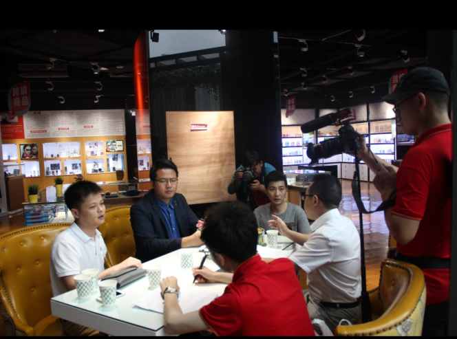 6月27日中午,位于宜家家居旁邊的洋展購進(jìn)口商品城,十幾輛統(tǒng)一標(biāo)識的轎車整齊地排列在門口,30多位身著紅色統(tǒng)一T恤的媒體記者,在新華社重慶分社副總經(jīng)理黃志明的帶領(lǐng)下,拿著采訪本和各式長槍短炮進(jìn)入商場,開始了對洋展購的采訪。洋展購董事兼董事長助理薛國能、總經(jīng)理邵玉柱接待了采訪車隊(duì)一行,并接受了新華社記者采訪。