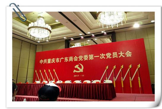 2017年12月1日中共重慶市廣東商會(huì)黨委第一次黨員大會(huì)在南岸麗笙酒店召開,會(huì)議產(chǎn)生了第一屆黨委委員,廣東省人民政府住重慶辦事處吳東、重慶市經(jīng)濟(jì)信息領(lǐng)導(dǎo)以及商會(huì)會(huì)長劉鶴輝等參加了大會(huì)。